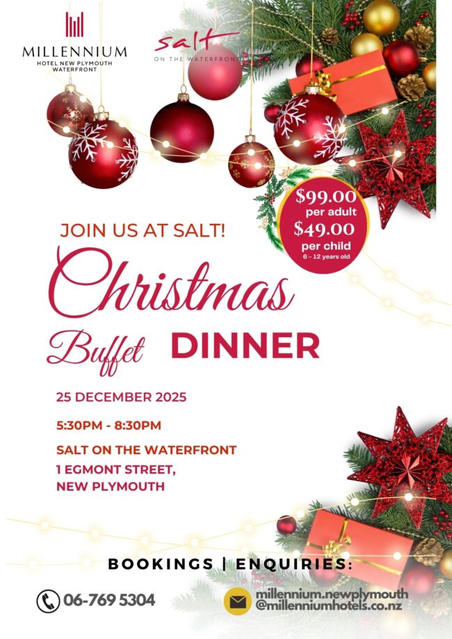 25th December 2025 5:30pm to 8:30pm $99 per adult and $49.50 per child (6 to 12 years old) Book online now or call 06-769-5304